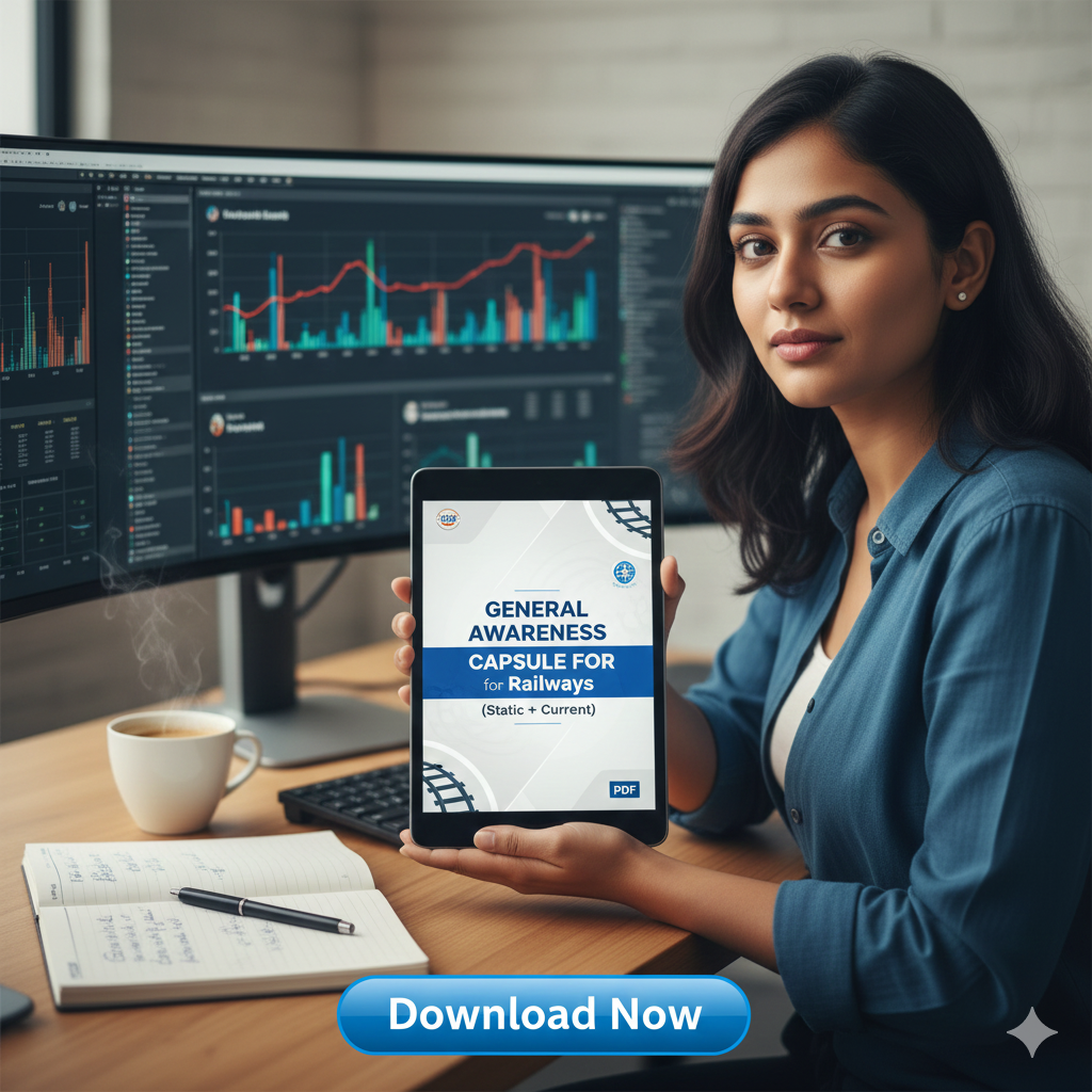 General Awareness Capsule for Railways (Static + Current) β Complete GK package for RRB NTPC, Group D and other railway exams. Covers important static GK + latest current affairs with one-liners and tables for quick revision.